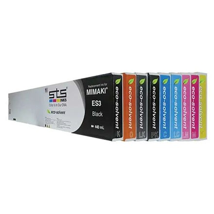 Original Mimaki ES3 eco-solvent ink cartridges, 440ml, compatible with JV33, CJV30, and JV5 series printers. Available in CMYK, Lc, Lm, White, and Clear. Delivers vibrant colors, quick drying, and excellent durability for indoor and outdoor printing.